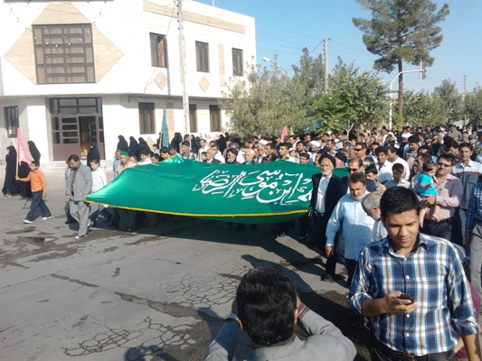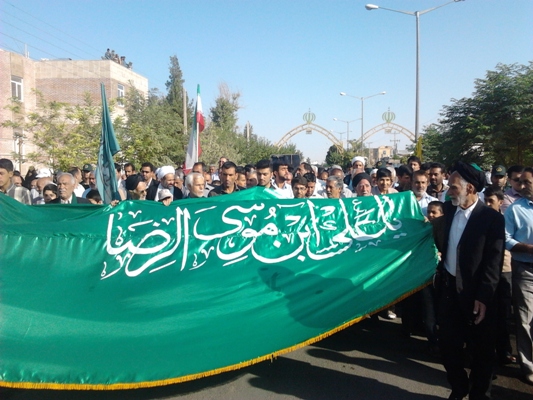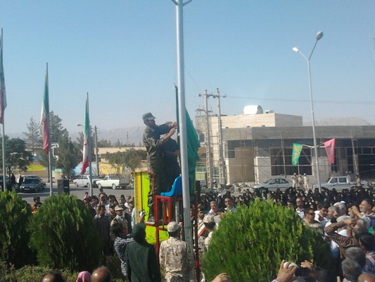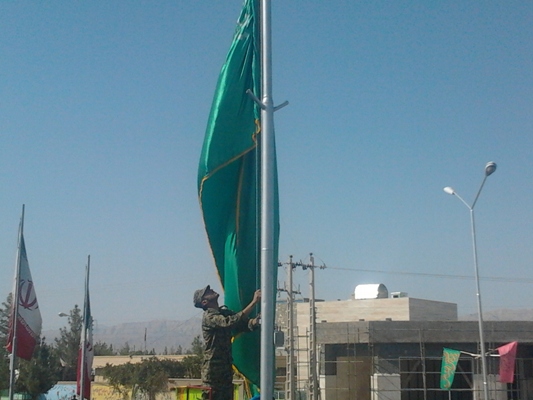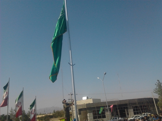 گزارش تصویری1/ برافراشته شدن پرچم گنبد حرم اما رضا(ع) در شهرستان بشرویه