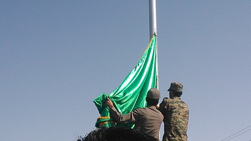گزارش تصویری/ پرچم مطهر حرم امام رضا(ع) در روز میلادش در بشرویه برافراشته شد