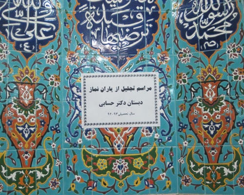 خبرگزاری پانا: طی مراسمی از ˝یاران نماز˝ مدرسه ی دکتر حسابی شهرستان بشرویه تقدیر شد .